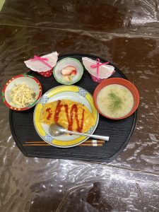 チョコレートを使ったおやつや、ハートの飾りつけで施設内も華やかに。